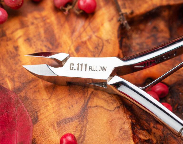 Filos rectos de 7.2mm, un largo total 106mm, mangos curveados, muelle una única pletina y un sobrio terminado mate, estos alicates se vuelven indispensables en un kit de manicura.