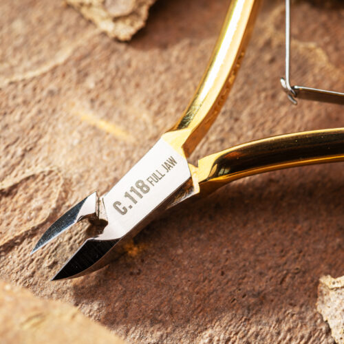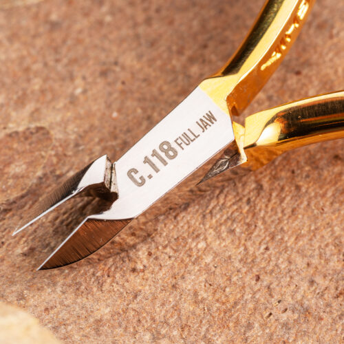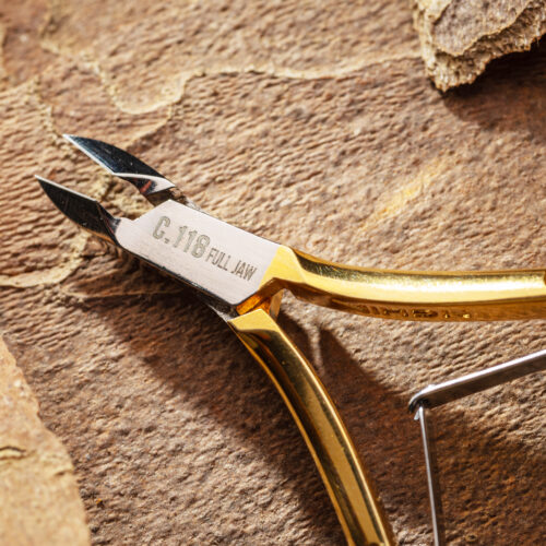 Filos rectos de 7.2 mm y un largo total de 106 mm, cuentan con un corte preciso y controlado. Sus mangos curveados brindan un agarre ergonómico, mientras que su muelle de doble pletina asegura un funcionamiento suave y equilibrado, proporcionando un movimiento estable y sin esfuerzo. El acabado brillante dorado le da un toque de lujo y distinción, haciendo de estos alicates una herramienta tanto funcional como estéticamente impresionante.